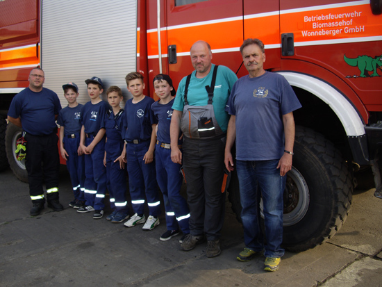 Am 23.05.2016 besuchte unserere Jugendfeuerwehr die Betriebsfeuerwehr des Biomassehofes Wonneberger in Groß Kölßig. Kamerad Uwe Wonneberger zeigte uns die Fahrzeuge der Betriebsfeuerwehr, wobei das ehemalige Flugfeldlöschfahrzeug mit seiner kompletten Ausrüstung von uns genauestens in Augenschein genommen wurde. Auch das ausprobieren von einzelnen Komponenten des Flugfeldlöschfahrzeuges war möglich.